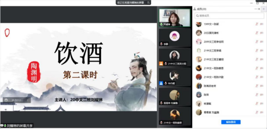 本次比赛分为初赛、决赛两个阶段,参赛选手从中小学语文教材中选取诗词经典篇目,进行诵读演绎和深度讲解。初赛于6月2日举办,文学院党总支副书记孙傲飚、学工办负责人贺芬、辅导员白斯琴担任评委,共16名同学参加,最后8位参赛者脱颖而出。决赛于6月9日举办,汉语言文学专任教师赵建军、陈海波、武慧敏担任评委,参赛者们精心选择了中小学语文教材中的诗词经典篇目,包括陶渊明的《饮酒》、苏轼的《念奴娇·赤壁怀古》、戴望舒的《雨巷》、陆游的《十一月四日风雨大作》、李煜的《相见欢》、杜甫的《登岳阳楼记》等,或体现铮铮铁骨、或体现高洁情怀、或警示后人思考、或引发大家共鸣,诗歌与微课的结合形式更是增添了同学们对于诗词的热情。