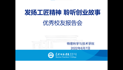为深入贯彻《中共中央国务院关于全面加强新时代大中小学劳动教育的意见》精神,落实《内蒙古自治区关于全面加强和改进新时代学校劳动教育及体育、美育工作的若干措施》要求,着力探索将劳动教育融入学生培养全过程,锻造新时代大学生劳动教育新模式,切实加强劳动教育的组织实施和支撑保障,6月7日,物理科学与技术学院邀请优秀毕业生李忠双为同学们做了以“发扬工匠精神,聆听创业故事”为主题的优秀校友报告会。党总支书记李慧龙、党总支副书记郭凯敏、学工办辅导员以及大一到大四在校生参加此次报告会,报告会由党总支副书记郭凯敏主持。