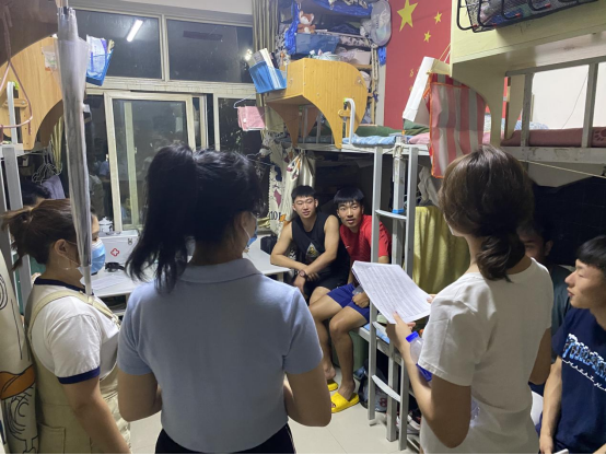 走访宿舍过程中,老师们亲切询问了同学们返校过程中及返校后遇到的困难,耐心听取了同学们生活中以及学习上遇到的困难,同时认真聆听并记录了同学们对宿舍管理的想法。