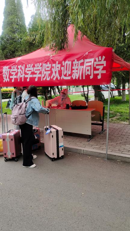 伴着初秋送来的丝丝凉爽,经过周密安排和精心准备,8月27日数学科学学院迎新生工作正式启动。来自祖国各地的莘莘学子严格遵守学校疫情防控规定,井然有序地在报到处出示录取通知书和身份证核验信息,接待处老师耐心细致地解答新同学的各种疑问,助理班主任虽不能到场,但一直在线上和同学们保持紧密联系,及时向接待处老师反馈问题,争取以热情周到的服务尽快消除同学们初来乍到的陌生感。