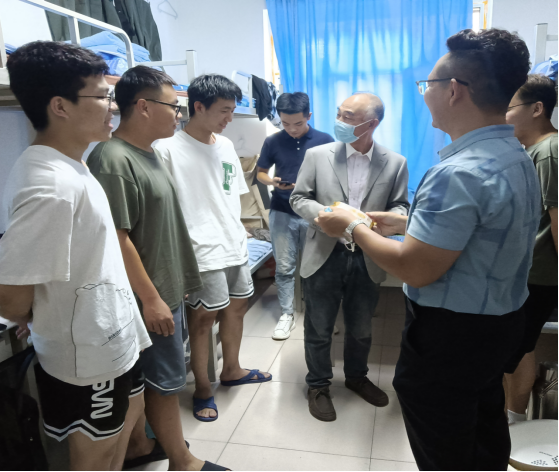 于书记代表学院向同学们表达了节日的问候和祝福,详细询问同学们返校后的学习、工作、生活状况,认真倾听同学们的心声,叮嘱同学们要把刻苦学习作为首要任务,作为一种责任、一种精神追求、一种生活方式,让勤奋好学成为青春远航的动力,勉励同学们进一步弘扬中国优秀传统文化,传承尊师重道精神,共同营造和谐美好,积极向上的校园文化生活。副书记恩合与2022级新生们进行了亲切交流,他指出,要提高入学第一项必修课——军事训练的积极性,强化身体素质以崭新的精神面貌迎接大学学习生活。他强调,要积极配合疫情防控各项措施,共同筑牢学校疫情防线。