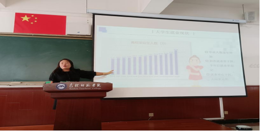 党总支副书记吴冰给同学们梳理有关就业流程,并从如何收集与探索就业信息方面,为毕业生们提供了详细的指导。着重强调了就业定位的重要性,希望同学们放宽眼界,大胆拓宽就业渠道,注重多元化职业发展。