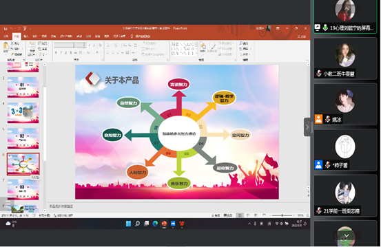 本次线上会议主要邀请校级第七届“互联网+”大学生创新创业大赛金奖得主2019级心理专业学生刘懿宁和银奖获得者王澜鲆同学、2019级小教2班徐珂同学以及2019级物理学院王少倪同学做获奖经验交流。邀请2021年大学生创新创业训练计划项目获国家立项的2019级心理专业李雅丹同学做创新创业项目申报经验分享。会中,受邀同学分别从项目选题依据、PPT及项目计划书制作、比赛拿分点、答辩事项等方面进行详细讲解,用真切生动的语言鼓励大家积极参加比赛,在实践中锻炼自我。其中2019级小教专业的徐珂同学通过分享自己学习及比赛的亲身经历与经验,讲述了创新创业比赛的各个阶段努力方向、注意事项及个人收获等,最后耐心细致地为同学们答疑解难并提出建议。