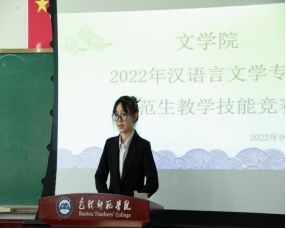 为全面拓展师范生的综合素质,提升师范生的实践技能和专业技能,文学院于9月22日下午成功举办2022年师范生教学技能竞赛。比赛分为两场,汉语言文学专场、汉语国际教育专场,评委教师根据《包头师范学院文学院2022年师范生教学技能竞赛评分标准》现场打分,本次比赛共有22位选手参加。