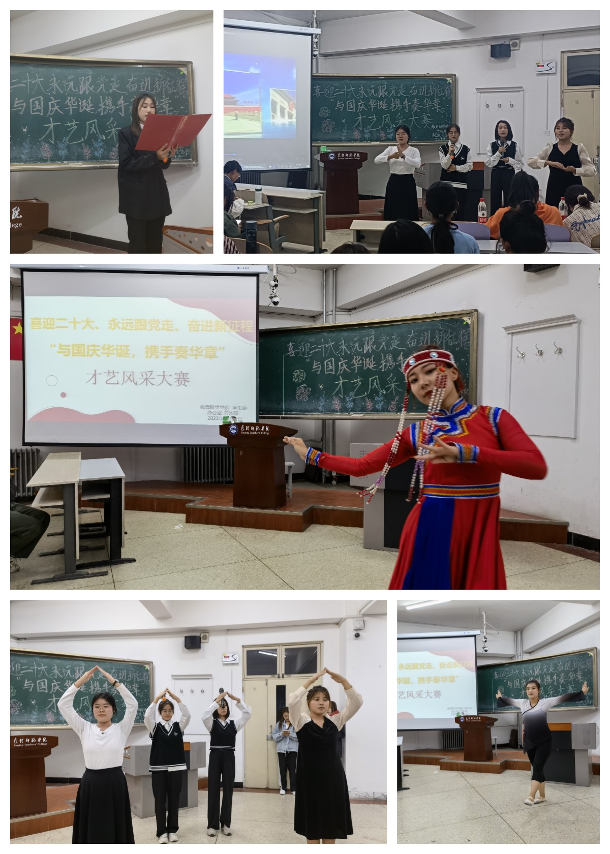9月29日晚7点,学生会文体部和办公室联手在博西104举办“喜迎二十大、永远跟党走、奋进新征程——与国庆华诞,携手奏华章”才艺风采大赛。活动分为初赛和决赛,初赛为视频征集,参赛作品形式多样,新颖独特,同学们通过唱歌、朗诵、舞蹈,表达出对祖国的热爱。通过评委审核,共有16组同学进入决赛,其中唱歌6组,舞蹈4组,朗诵6组。决赛现场,气氛热烈、掌声阵阵,各具特色的节目轮番登场,有的同学演唱了歌曲《祖国的花朵》《星辰大海》,满怀深情的歌颂传递新时代的美好生活;有的同学通过舞蹈《祝福》《万疆》等,用最美的舞姿,献礼祖国华诞;还有的同学朗诵了《祖国妈妈》《世界东方》,声音抑扬顿挫,铿锵有力,深切表达对祖国和党的热爱与祝福。本次活动在挖掘同学们特长的同时,也为学生提供了一个展示自我、相互学习的平台,在丰富同学们课余文化生活的同时,培养了他们优良学风,展示了教科学子良好的精神风貌。
