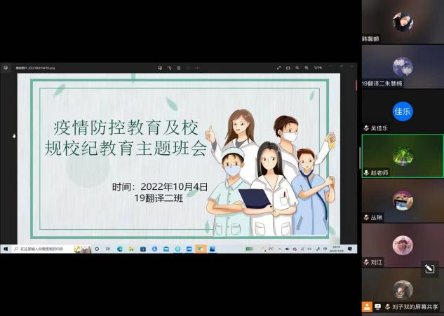 为加强疫情防控工作,进一步增强同学们的遵纪守法意识,10月4日—10月7日,外国语学院组织开展了以“校规校纪”为主题的班会。