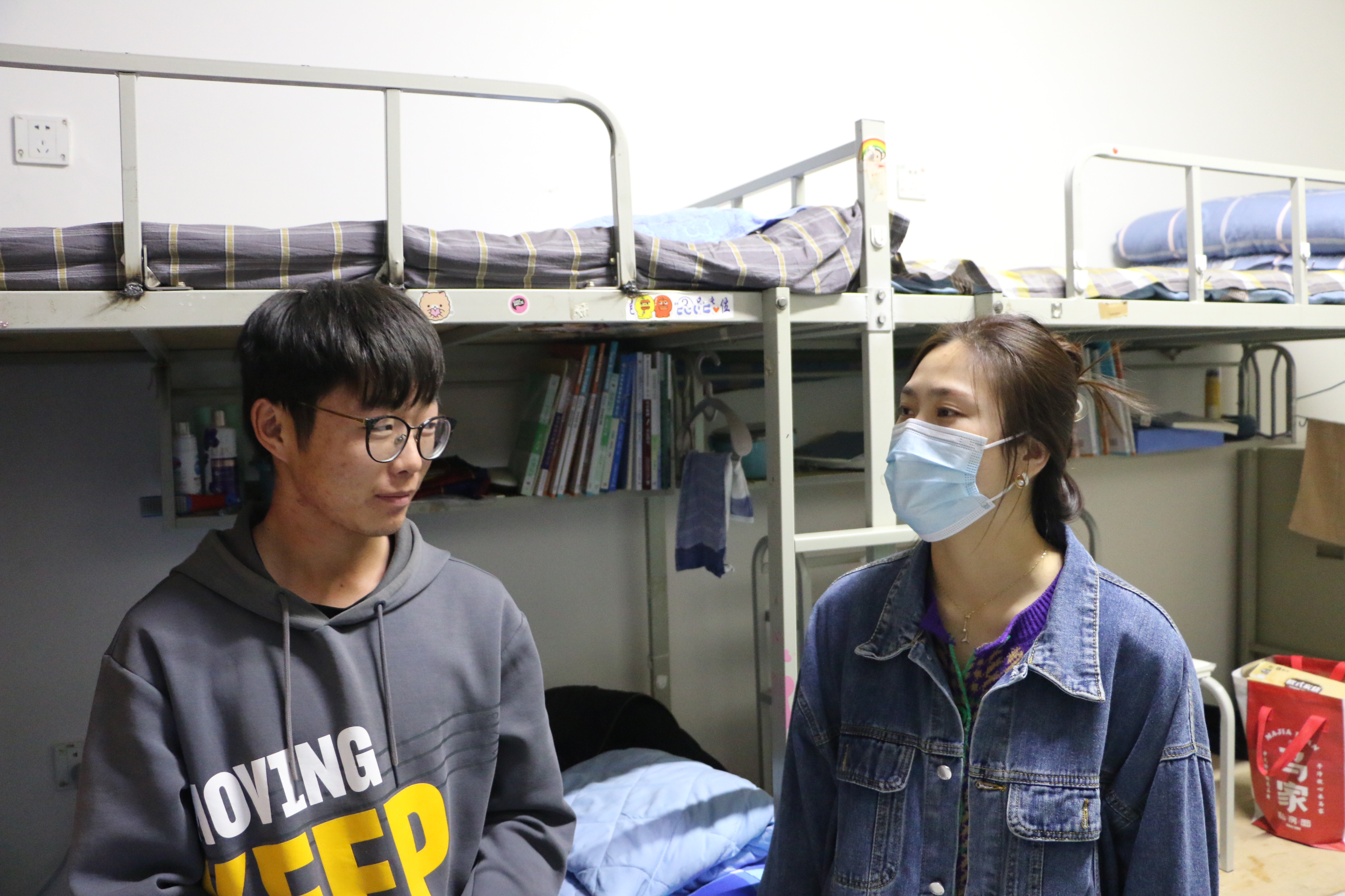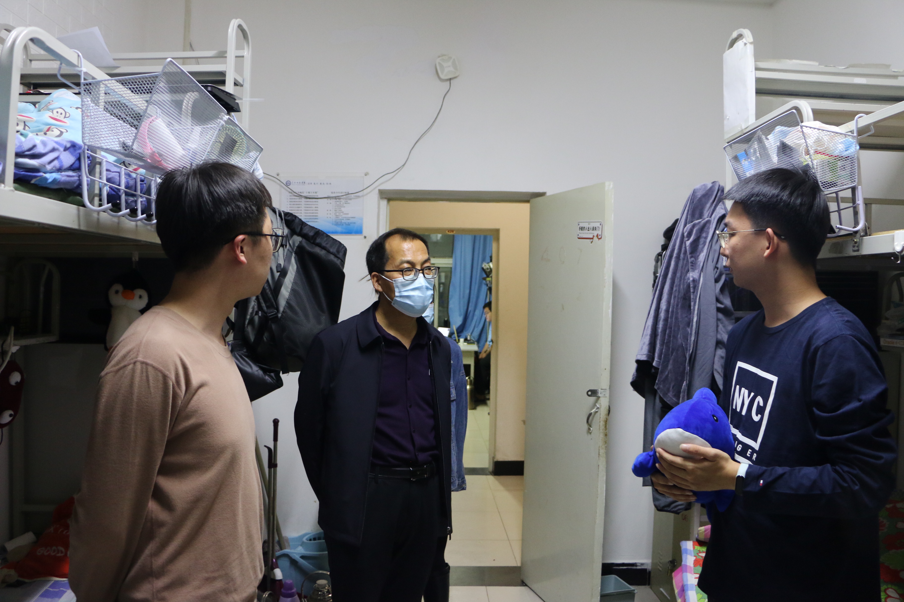 马院长亲切询问同学们的学习、生活情况,了解线上教学中遇到的问题,关心学生能不能吃好睡好以及疫情期间大家的实际困难等。在走访过程中,马院长时刻鼓励同学们要调整心态,积极适应疫情时期的校园生活,表示学院会全力确保各项措施落实到位,第一时间回应大家的诉求,尽最大努力满足同学们在校学习生活需要。他提醒同学们必须要遵守校纪校规,按时打卡、配合核酸检测,做好自己该做的事情,就是为学校的疫情防控工作做出的最大的贡献。