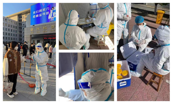 当我穿戴好防护服和防护面具的那一刻,心中的使命感和责任感油然而生。在志愿服务的几个小时里,我负责协助医护人员进行核酸检测,穿着密不透风的防护服,无法去卫生间,也不能吃饭、喝水。身上不透气,汗水很快将衣服打湿了,又因为带着口罩,哈气上升到防护面具上凝结成了水雾,不断的模糊视线。这时候我才真正体会到了一线抗疫医护人员的艰辛,没有从天而降的英雄,只有挺身而出的凡人,向那些长期坚守在防疫一线的医护人员致敬!我坚信疫情终将散去,让我们静候春暖花开,加油!