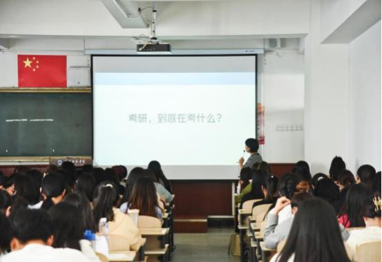 她建议,初试择校时,要选择合适、感兴趣,且在能力范围内的学校;锁定院校后,仍需了解相关信息,例如院校招生人数、真题难度、复试占比等,关注该院校近三年的招生情况,预测未来招生走向;确定考研计划后,要依据各院校发布的考研大纲及参考书目制定具体的学习计划,专项突破,保持良好心态。讲座最后,老师谈到考研在学术研究、就业起点等方面的益处,希望同学们端正态度,理性选择,充分准备,早日考上心仪的院校。