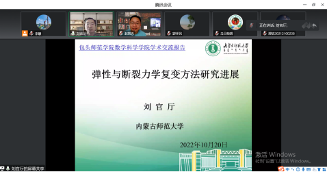 10月20日下午,由科技处主办、数学科学学院承办的阴山讲坛系列讲座(十二)在腾讯会议成功举办。内蒙古师范大学刘官厅教授受邀为数学科学学院教师及校内外相关人士共100多人作了以“弹性与断裂力学复变方法研究进展”为主题的线上讲座。此次讲座由赵国忠院长主持。