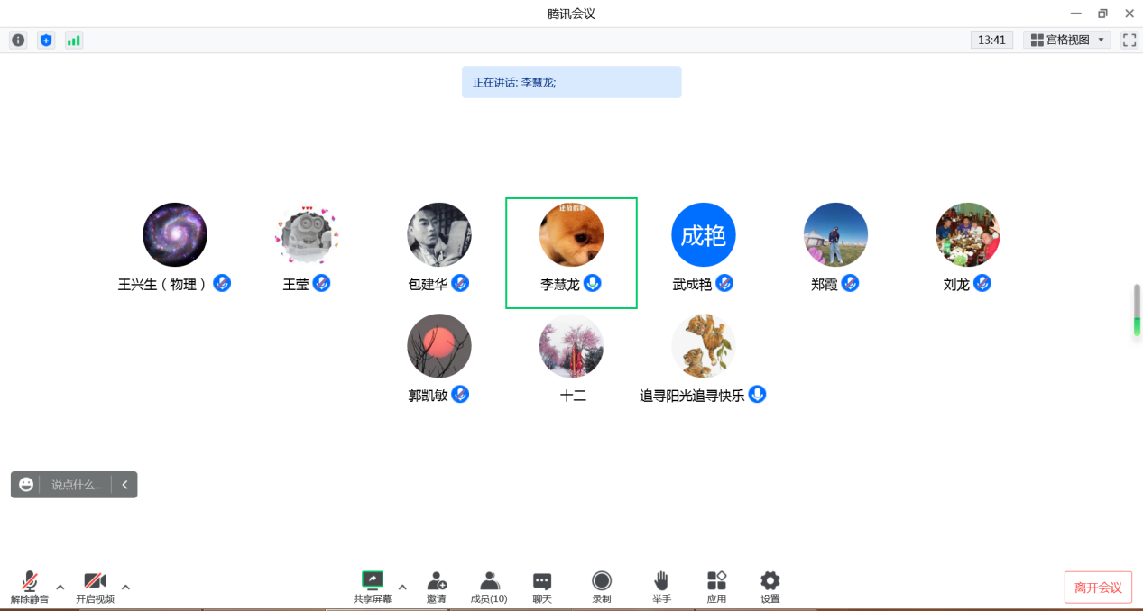 10月27日上午10点,物理科学与技术学院党总支召开中心组线上组织生活学习会,进行党的二十大报告专题学习。参加会议的有物理科学与技术学院党总支书记李慧龙,党总支副书记郭凯敏,教工党支部书记王莹,重点实验室与创新团队党支部书记武成艳,学生第一党支部书记王兴生,学生第二党支部书记包建华,工会主席云慧琴,学工办负责人郑霞、刘龙,辅导员马泽宇。
