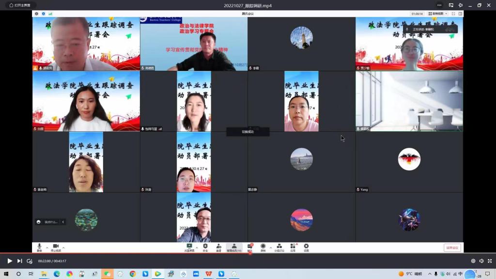 为全面了解政法学院近三年毕业生就业情况,准确掌握人才培养质量和就业指导服务工作水平,10月27日下午,政法学院在腾讯会议上召开了毕业生就业跟踪调查动员部署会。学院党总支书记高德胜、副院长李霞、系主任、2019-2021届毕业生班主任和辅导员参加了会议。会议由党总支副书记郭宏升主持。