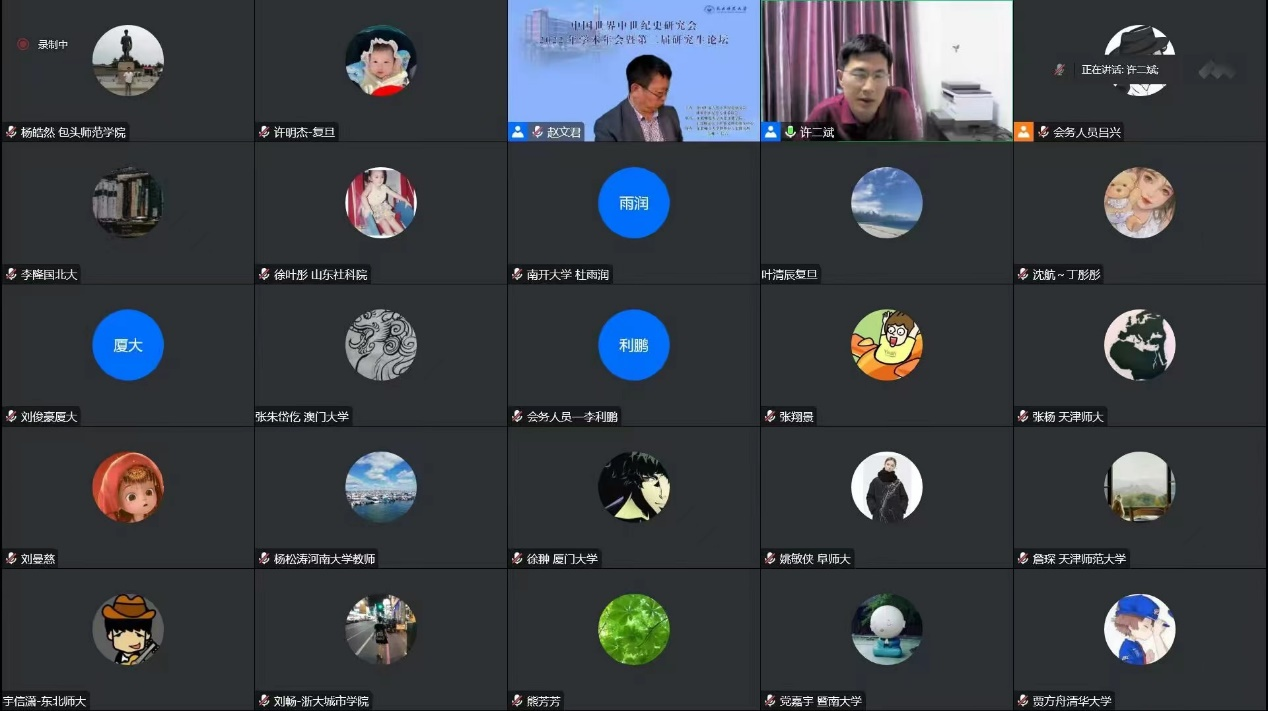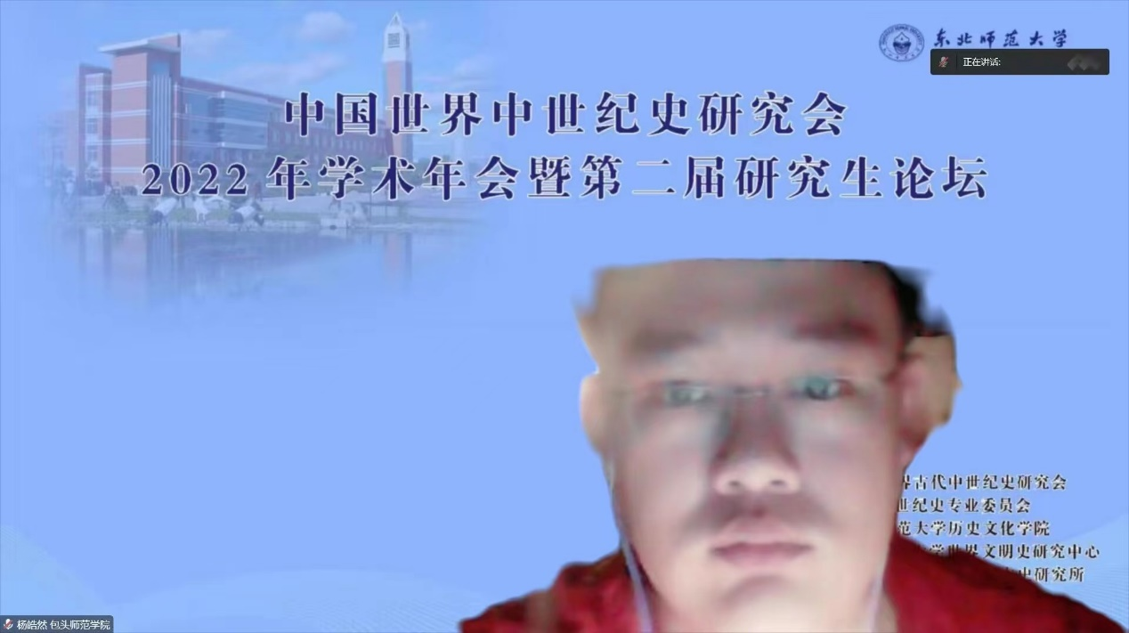 在2022年10月29-30日,尚烨教授、19级历史班杨皓然同学与21级历史班高蕾同学再次线上参加中世纪史年会。本次年会由中国世界古代中世纪史研究会、世界中世纪史专业委员会主办,东北师范大学历史文化学院、东北师范大学世界文明史研究中心承办。虽然为线上参加,但尚烨教授,杨皓然同学与高蕾同学仍然做了充分的准备,在年会开始前阅读了所需大量相关论文以便在会议上收获更多。