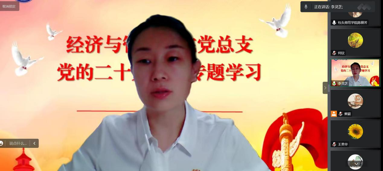 为深入学习贯彻好党的二十大精神,按照学校党委的部署,10月27日下午,经济与管理学院党总支组织全体教职工进行政治学习,专题学习党的二十大精神。学院党总支书记李灵芝主持会议,全体教职工参加。