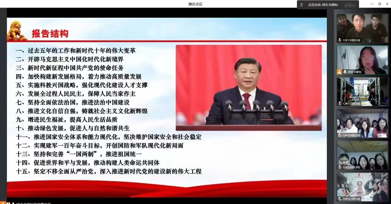 党的二十大是在全党全国各族人民迈上全面建设社会主义现代化国家新征程、向第二个百年奋斗目标进军的关键时刻召开的一次十分重要的大会。为将二十大精神传达到每一名学生的心里,数学科学学院团总支组织各团支部围绕“学习宣传贯彻党的二十大精神”主题,开展团日活动。