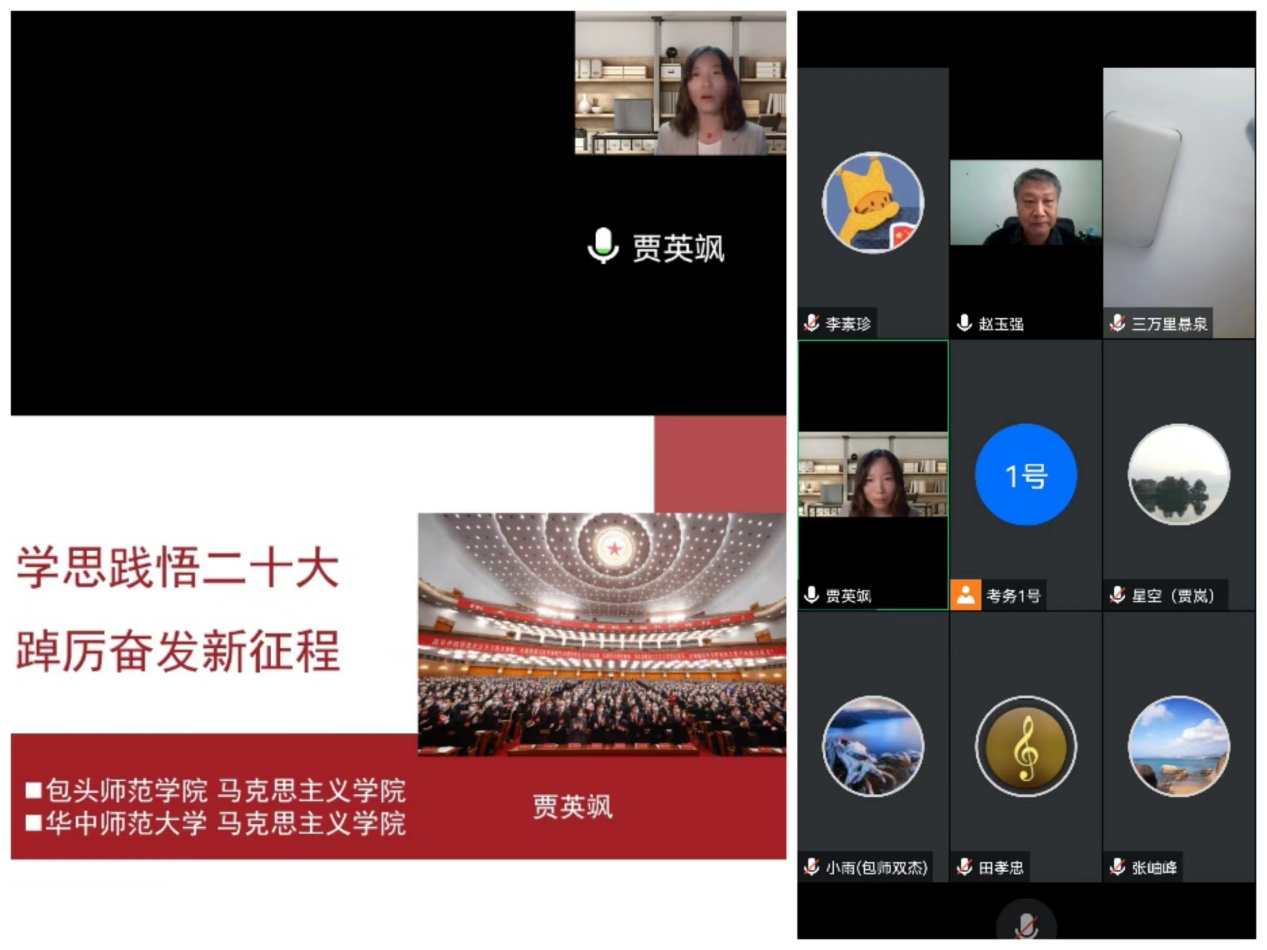 为学习贯彻党的二十大精神,准确把握精神实质、深刻领悟丰富内涵,音乐学院、教育科学学院于11月10日下午,邀请我校马克思主义学院青年教师、华中师范大学博士宣讲团成员贾英飒作了《学思践悟二十大踔厉奋发新征程》线上专题讲座,讲座由音乐学院党总支书记赵玉强主持,两个学院的全体教职工在线聆听了讲座。