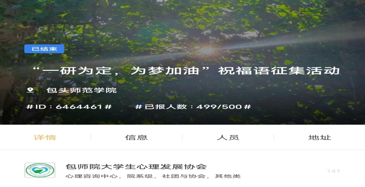在疫情防控的过程中,备考研究生的同学们会遇到各种各样的困难,备考心理会产生一些微妙的变化。为缓解备考同学们的焦虑情绪,保持积极向上的健康心理和阳光心态,同时鼓励考生们积极备考,心理咨询中心于11月6日至15日面向全校同学组织开展了“一研为定,为梦加油”祝福语征集活动。
