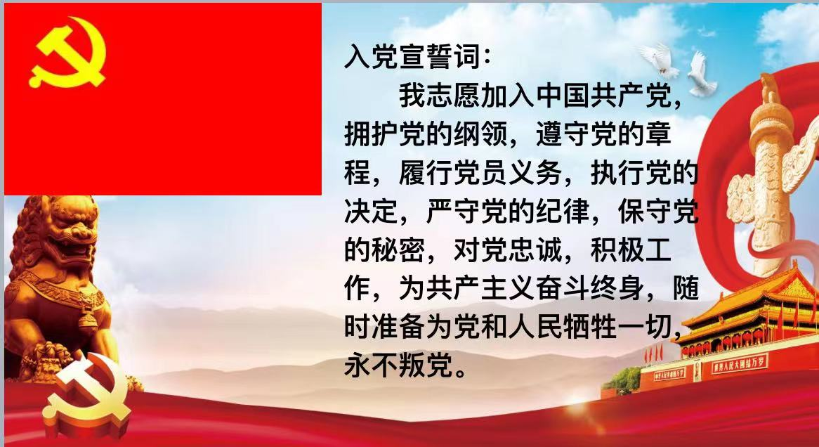 会议第二项,入党宣誓。在与会党员的充分讨论之后,会议通过无记名投票的方式进行表决,一致同意接收学生第一党支部19名同志、学生第二党支部38名同志为预备党员并在党旗下进行了入党宣誓。