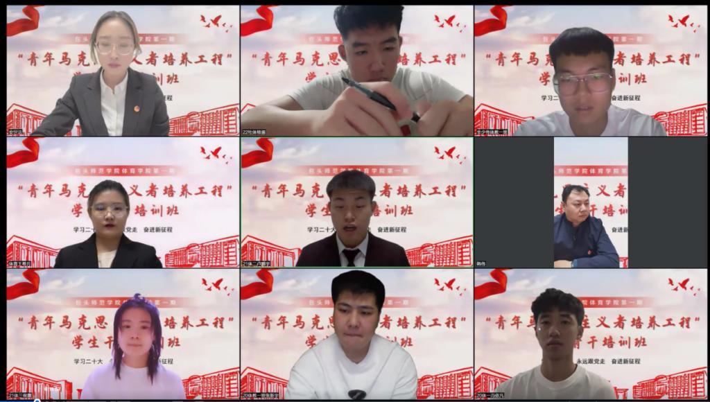 12月1日,体育学院“青年马克思主义者培养工程”学生骨干培训班开班仪式在线上举行。学院党总支书记韩伟、党总支副书记尚岩、学工办全体教师出席本次开班仪式,团总支、学生会现任职全体学生骨干以及各班团支书、班长共81名学员参加了仪式。开班仪式由团总支负责人安世洁主持。