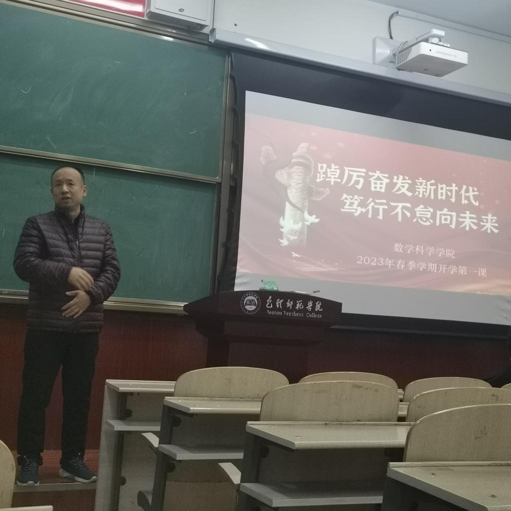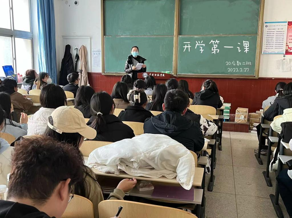 按照学校关于组织开展2023年春季学期“开学第一课”通知要求,2月27日,数学科学学院全部班级开展了以“踔厉奋发新时代,笃行不怠向未来”为主题的 “开学第一课”主题班会,旨在全面贯彻党的教育方针,落实立德树人根本任务,进一步激发大学生以勇毅前行的奋进姿态投入新学期的学习和生活中。