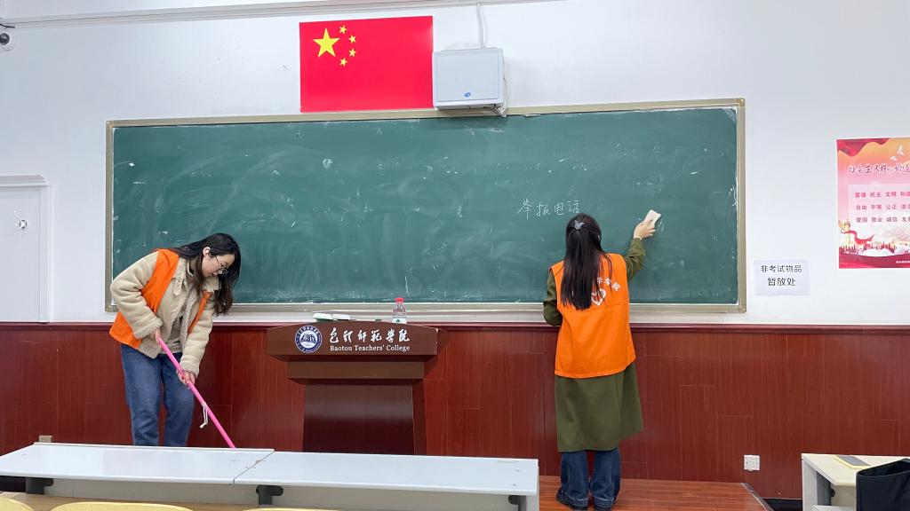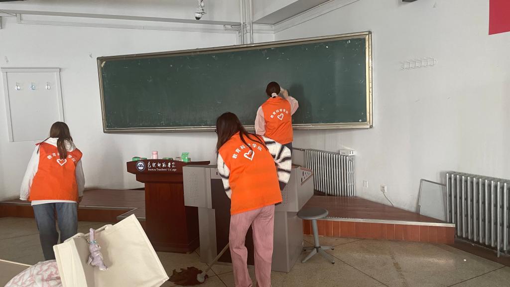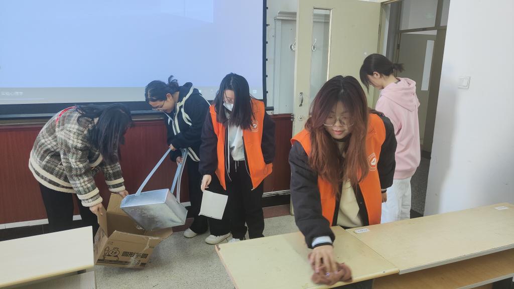 活动现场,志愿者们手持扫帚分工明确,随即开始清扫周边环境中的垃圾,细心清理着每一个角落。还有的同学将教室的黑板、桌椅、讲台擦得一尘不染,努力为同学们创造整洁舒适的学习环境。校园里处处都有志愿者们低头弯腰的身影,一抹暖心的“志愿红”,也让明媚的春天分外动人。他们以实践赓续雷锋精神,激励着更多学子见贤思齐、择善而同,成为新时代雷锋精神的践行者。清扫活动结束后,有志愿者说到,作为新时代青年,雷锋精神不能只停留于口中,更要体现在行动里,只有我们身体力行,才能讲好雷锋故事、弘扬雷锋精神,从中汲取奋进力量。