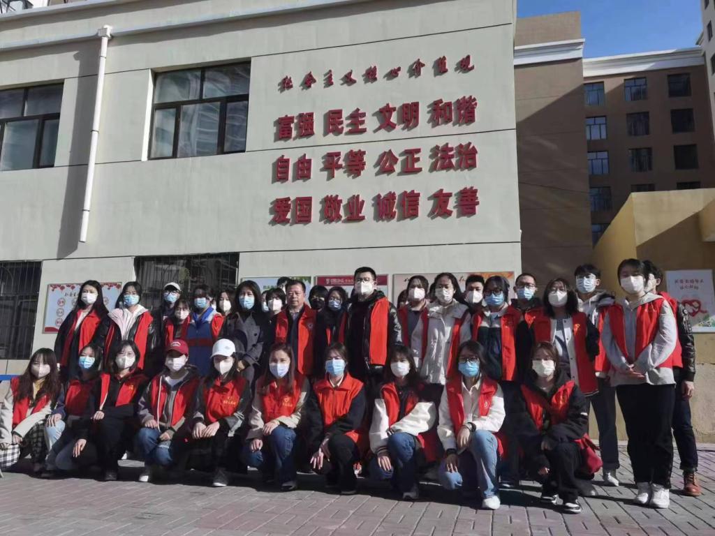 当天下午三点,郭宏升副书记与学院社区邓敬梅主任带领大家进行了志愿服务活动。两名教师和40名学生分成三队,一对负责摆放自行车、清理楼道内杂物,另两队负责捡拾社区内宠物粪便。同学们不怕苦、不怕脏、不怕累,发扬艰苦奋斗精神,无死角的高效完成了任务。其间,郭宏升副书记与社区工作人员交流了社会工作专业的就业方向与就业所必备的专业知识技能等问题,了解了参与街道社会工作人员考试的条件、内容以及时间。工作人员为同学们介绍了社区工作的主要内容以及在具体工作中遇到的问题,还向同学们介绍了基层工作的重要性,使同学们对基层工作有了更进一步的了解和认识。郭宏升副书记建议同学们积极考取社工证,为大四高质量择业就业打牢基础。同学们纷纷表示,参与社区志愿服务活动使他们对于自身所学专业有了更加清晰的认知,对于自己以后的就业方向也有了初步的规划。最后,郭宏升副书记与社区工作人员以及全体师生进行了合影留念。
