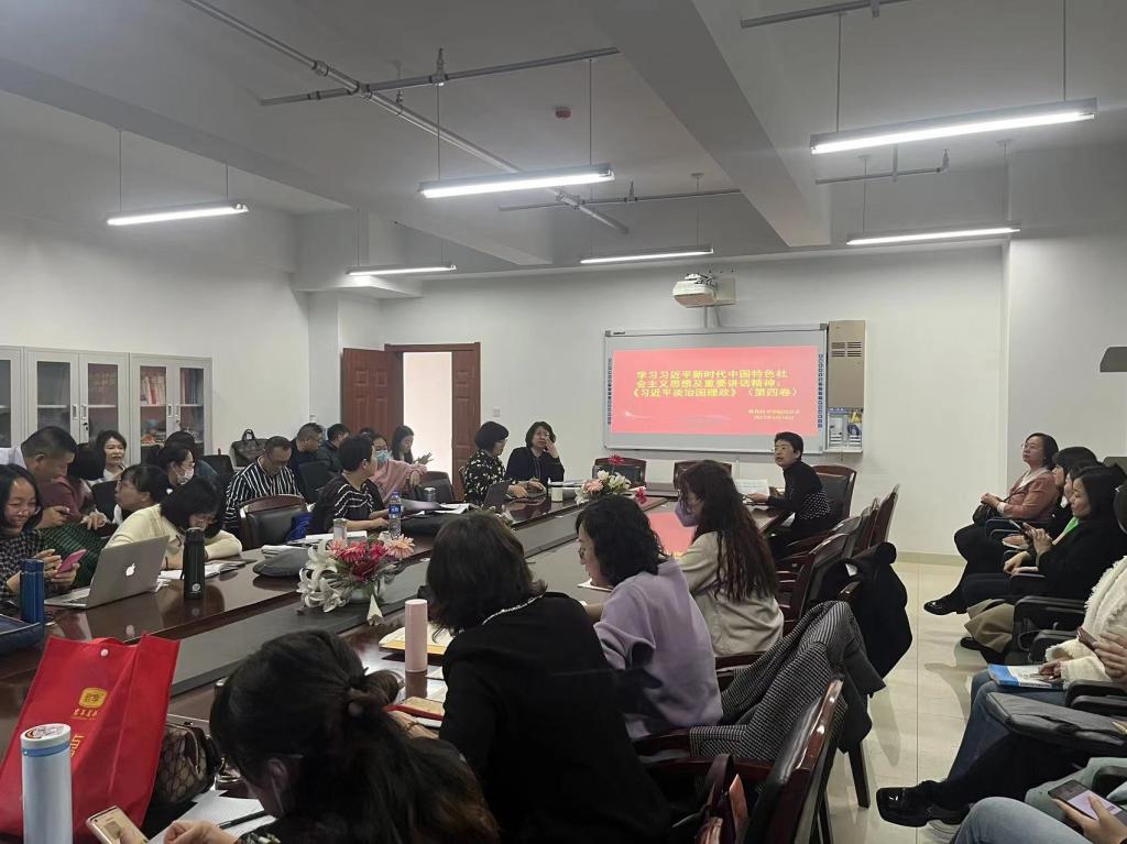 首先,李书记进行领学,她指出《习近平谈治国理政》(第四卷)集中展示了马克思主义中国化时代化的最新成果,彰显出习近平总书记强烈的政治担当、历史担当,强大的人格力量、实践力量,深厚的人民情怀、家国情怀。全体教师要旗帜鲜明讲政治,不断增强“四个意识”,坚定“四个自信”,做到“两个维护”,时刻保持在理论上清醒、政治上坚定,自觉做习近平新时代中国特色社会主义思想的坚定信仰者和忠实践行者。要进一步深刻领会《习近平谈治国理政》(第四卷)的重大意义、丰富内涵,努力在学懂弄通做实上下功夫,更好地把学习成果转化为奋进新征程、建功新时代的工作实绩。随后,全体教师集体观看学习视频,6位老师对“国之大者”从不同角度进行了交流发言。