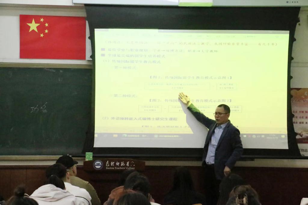 李博士表示出国留学能帮助我们提升国际视野,开拓眼界,并鼓励同学们提升学历,夯实本领,以更好的姿态服务社会。