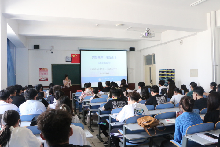 为积极落实资助育人工作,深入推进资助育人,铸魂育人,着力培养学生自立自强、诚实守信、知恩感恩、勇于担当。6月6日,信息科学与技术学院、马克思主义学院邀请了学生工作部资助管理科科长赵雪晶老师在博学楼东307联合举办了主题为“资助政策、助我成才”专题政策宣讲会。信息学院学工办负责人姜嘉丽、辅导员李建霞、马克思主义学院辅导员乌云塔那老师出席了会议,两个学院近百余名学生参加。