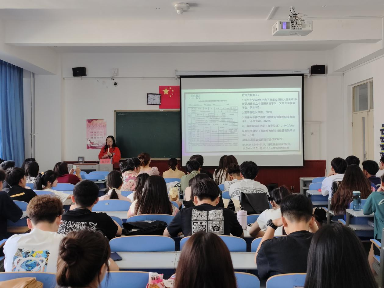 赵老师以“信息差”切入,分别从贫困生认定的申请和程序,国家、自治区、学校的各类奖助学金申报条件,勤工助学,生源地助学贷款等方面进行了细致的解读。赵老师还通过提问的方式回顾了政策方面的重点问题,同学们积极踊跃回答。