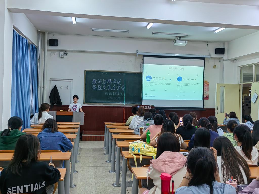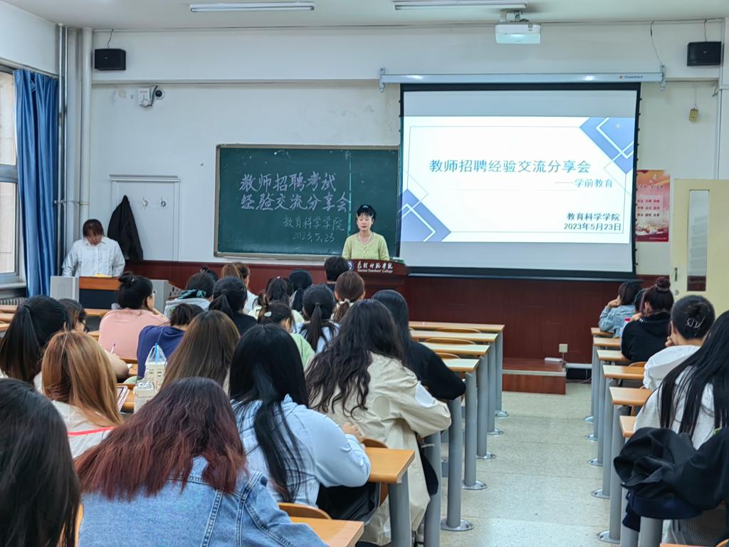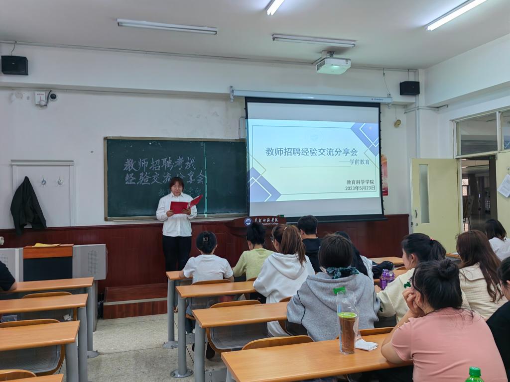 为了让同学们对教师招聘考试有充分地认识和了解,教育科学学院于5月31日晚在博东101举办了学前教育教师招聘考试经验分享会。分享会邀请了2019级教师招聘考试成功的同学,2020级、2021级、2022级学前教育专业本科生参加。
