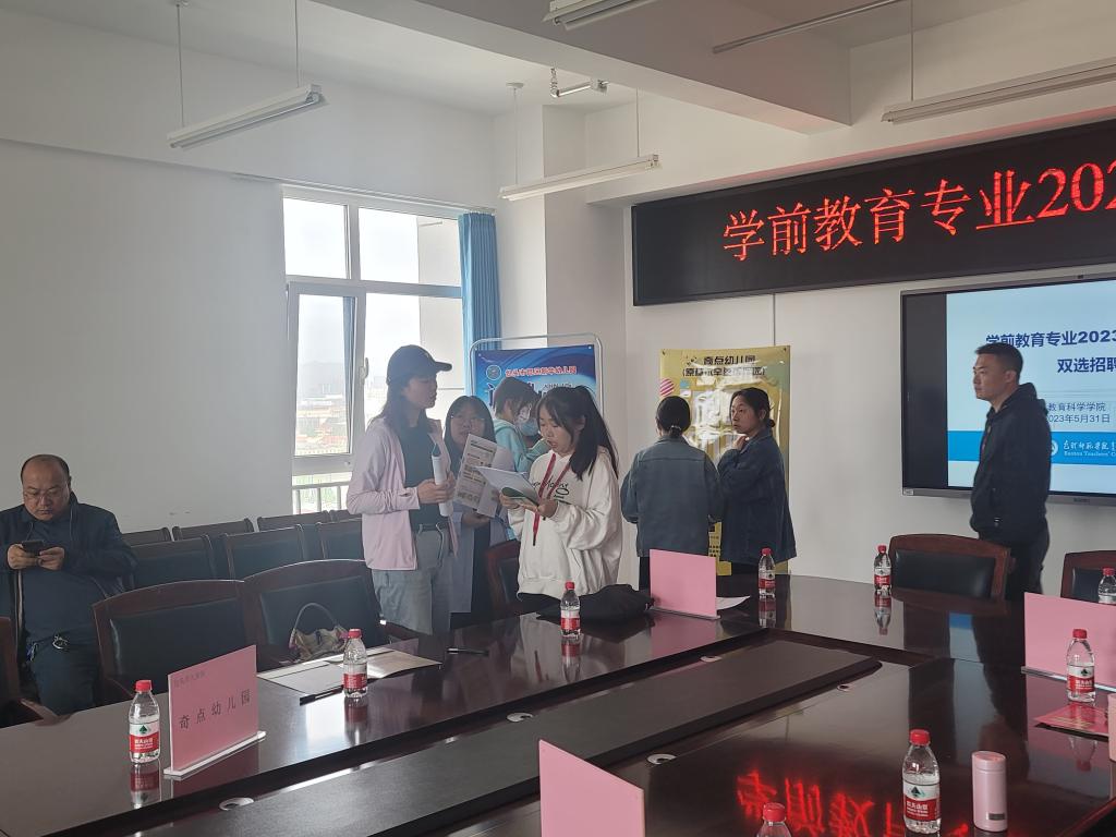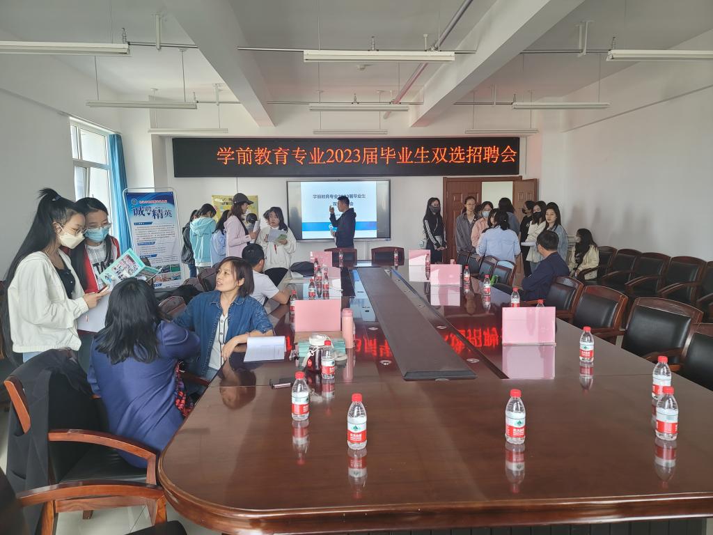 为了进一步推进毕业生就业工作,构建毕业生与用人单位的交流平台,教育科学学院于5月30日上午在恒德楼1313室举行了学前教育专业2023届毕业生双选招聘会。2023届学前教育专业毕业生参加了本次招聘会。