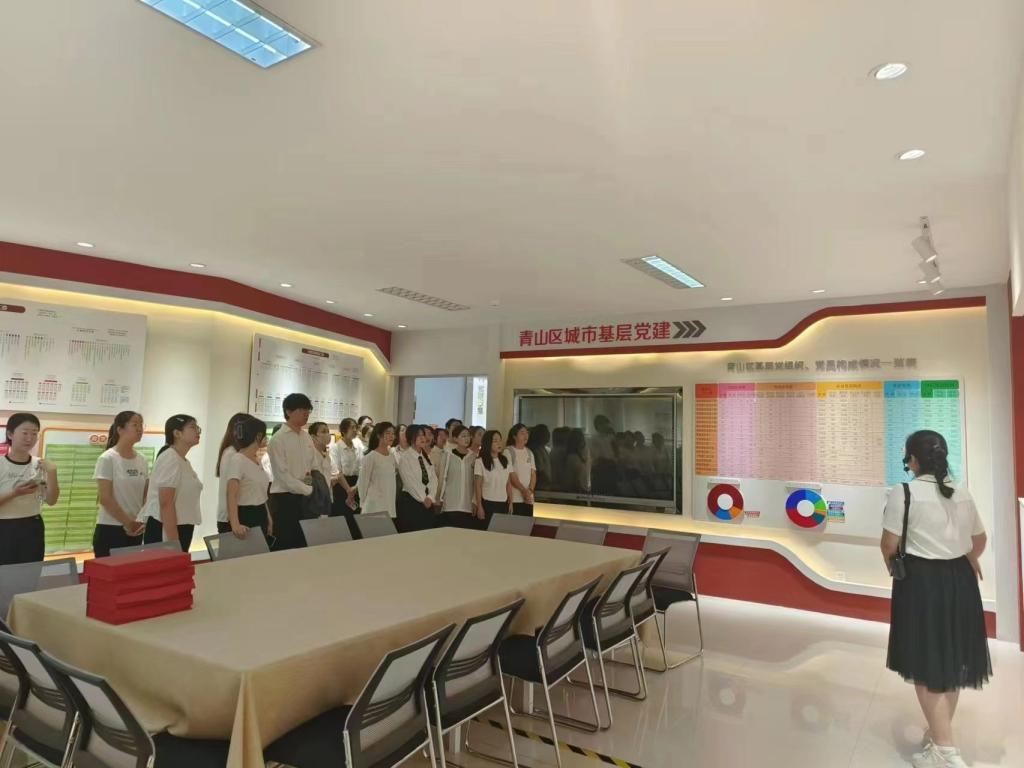 为深入开展学习贯彻习近平新时代中国特色社会主义思想主题教育,加强党史教育,2023年7月1日,在学生党支部书记方丽慧、王璐然的组织和带领下,教育科学学院两个学生党支部开展了以“感党恩、听党话、跟党走”为主题的党日活动。全体学生党员步行到中共青山区委党校青山区党群服务中心参加了活动。