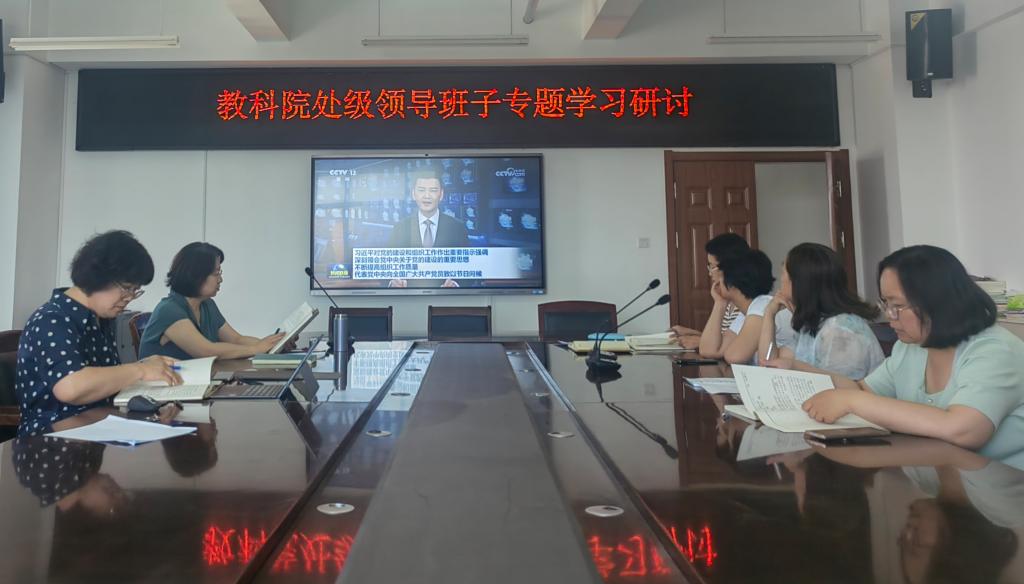 7月18日上午,教育科学学院院召开中心组专题学习研讨——学习贯彻习近平总书记关于党的建设的重要思想。党总支副书记李燕领学,院长李芳、副院长刘俊英、教工第一、第二党支部书记王敏、张烨琳和学生支部书记方丽慧参加。