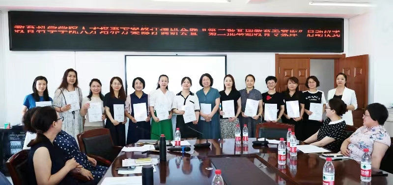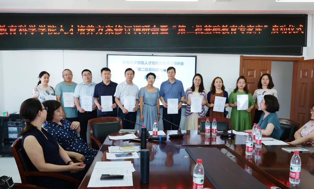 在整校推进师范专业认证工作之际,为了精准定位各专业人才培养目标、细化目标内涵和毕业要求、形成科学合理的课程体系,提高人才培养质量;同时为了深入推进教育科学学院与地方基础教育协同育人机制,构建一流师范生人才培养体系,突出专业特色,教育科学学院于2023年7月24日上午在恒德楼1313召开了教育科学学院人才培养方案修订调研会暨“第二批基础教育专家库”启动仪式。出席会议的有教务处副处长王骞、教育科学学院领导班子和教师代表,会议嘉宾包括来自包头市区两级的教研员代表、教育科学学院实践基地负责人和教师代表。会议由教育科学学院副院长刘俊英主持。