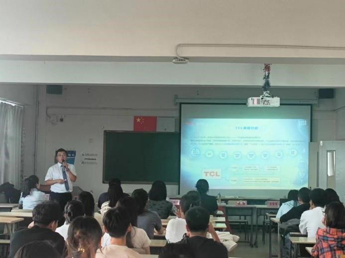 其次,TCL中环招聘经理谢亚楠从人才与团队、创新与变革、文化与精神三个方面对公司的概况及文化理念进行细致介绍。招聘经理郭凯对招聘岗位、任职要求、晋升通道、薪资福利等方面向同学们进行了全面的讲解,并分享了他们在新能源科技领域的最新研究成果和创新应用。同学们对公司的概况、工作环境、发展前景等有了深入的了解。