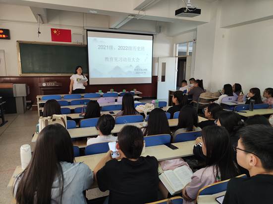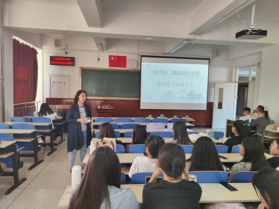 为使学生更好的明确本次教育见习的目的和要求,9月18日下午,历史文化学院在博学楼500教室举行2021级、2022级历史班教育见习动员大会,历史文化学院历史学系系主任张淑利老师和历史学科教学论教师李慧茹参会。