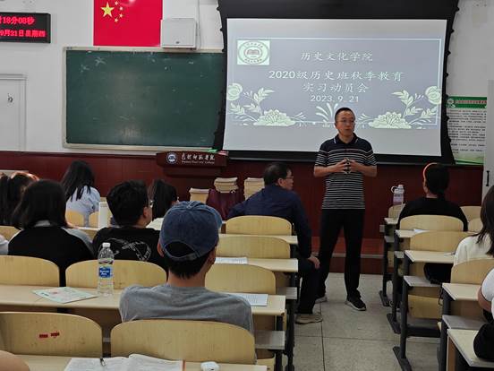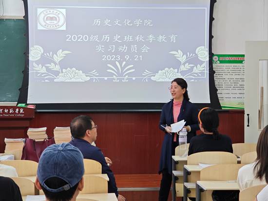 根据学校和历史文化学院2023年度实习计划,9月21日下午,历史文化学院在博学楼西602教室召开2020级历史学专业教育实习动员大会。历史文化学院副院长亢琦、历史学系主任张淑利、2020级历史班班主任吕喜林、历史学科教学论教师李慧茹参会,张淑利老师主持会议。