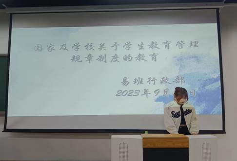 为帮助我院新生尽快适应大学学习和生活,了解学生管理规定。9月25日晚在九原校区综合教学楼,经济与管理学院易班学生工作站与大学生社团联合会共同为2023级学生开展此次新生入学教育。