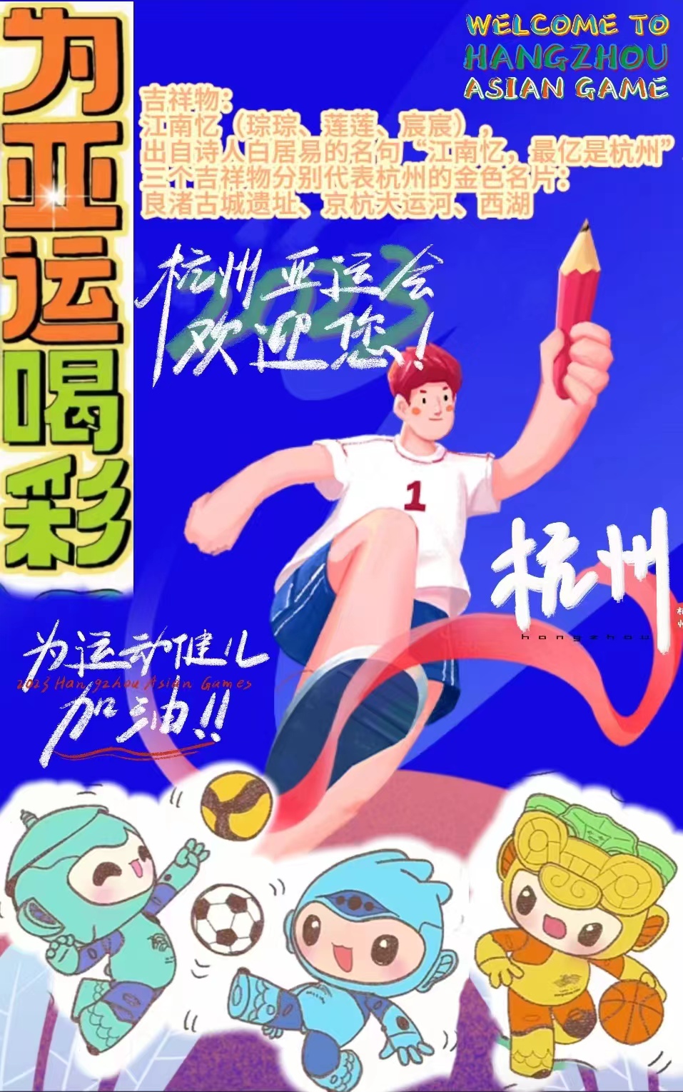 2023年9月23日,第十九届亚运会在杭州隆重举行,为了让同学们感受到体育文化的魅力,深入了解亚运精神,教育科学学院于9月26日举办了“汇聚热爱,奔赴亚运”电子海报主题活动,挖掘同学们对亚运会的热情和灵感,激发同学们对体育文化的认知和热爱。