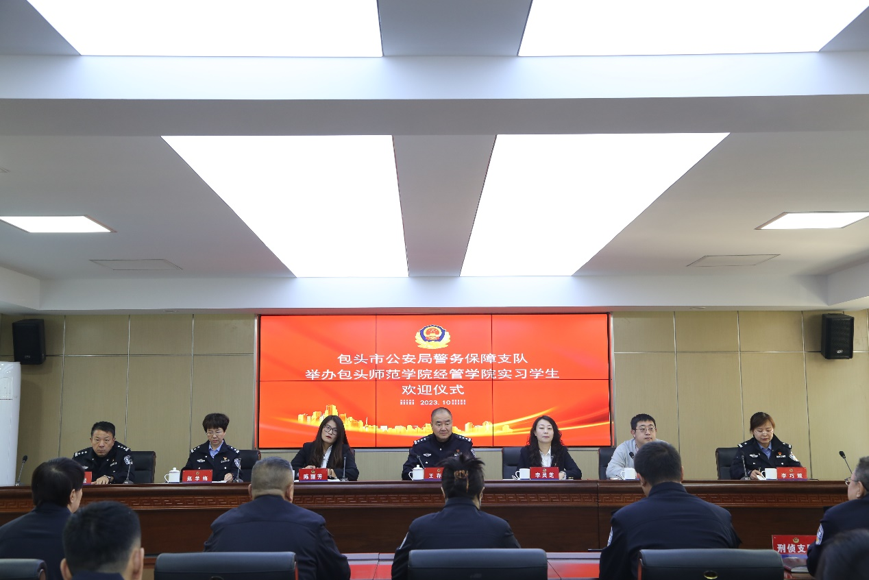 10月16日,经济与管理学院选派2024届实习生赴包头市公安局警保支队开展秋季专业实习。包头市公安局警保支队举行隆重的实习生欢迎仪式,经管学院党总支书记李灵芝、学工办主任陈丽芳、金融系主任郑钰参加;警保支队警务保障支队长王存礼、副支队长、各大队长、教导员,直属侦查二分局、直属侦查三分局、包神分局、刑侦支队教培支队、监管支队警保主任出席。