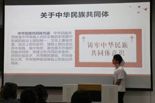 主讲人王多渊结合习近平总书记在中央民族工作会议上的重要讲话精神,加深同学们铸牢中华民族共同体意识的重要性认识。