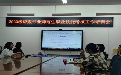 10月18日下午,为确保2020级应数专业师范生职业技能考核顺利完成,我院在综合实训楼1408室进行了2020级应数专业师范生职业技能考核工作培训会。在培训会上,针对本次师范技能考核工作,作了详细部署,从考核时间、考核细则、考核地点以及点对点负责人的工作内容及职责作了具体安排。