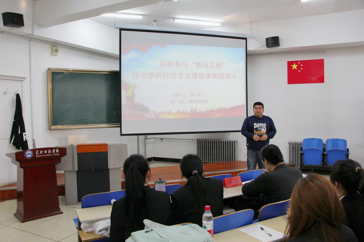 学院本次培训班以专题讲座、影视教育、户外团建及撰写心得等形式进行。在开班仪式结束后,党总支副书记徐洋以《积极参与“青马工程”作合格的社会主义建设者和接班人》为主题,从“青马工程”培训班的重大现实意义、认真完成本次“青马工程”培训班的各项学习任务、坚持理论联系实际,切实提高履行职责的能力和水平三个方面为全体学生骨干进行开班第一讲。