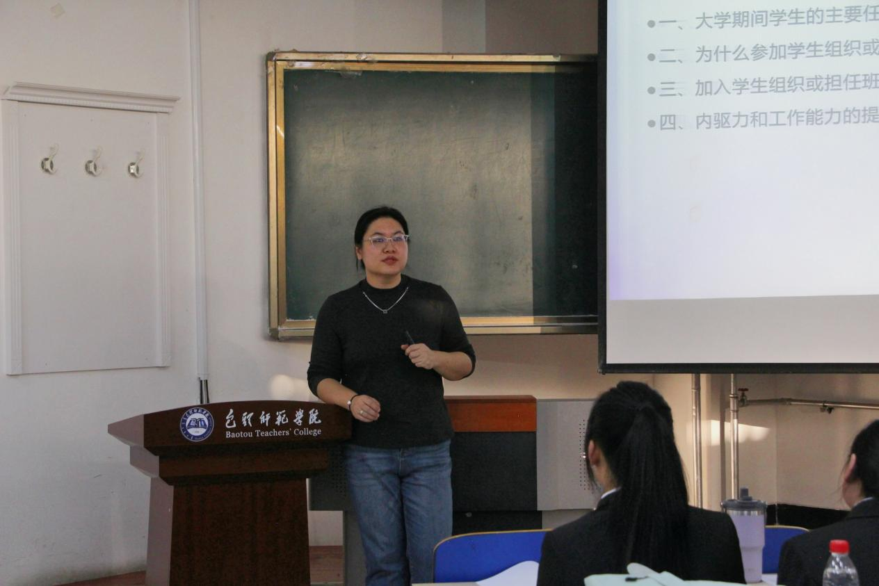 团总支书记郑霞老师以《学生骨干内驱力和工作能力提升》为主题,结合学生实际和生活与在场培训学生骨干交心、交流。通过丰富的实例为大家指明加入学生组织或担任班级学生骨干对未来人生发展的作用并号召全体学员要发挥学生骨干模范带头作用,在学习生活中争做有坚定理想信念、高尚道德情操、努力拼搏奋斗的新时代好青年。