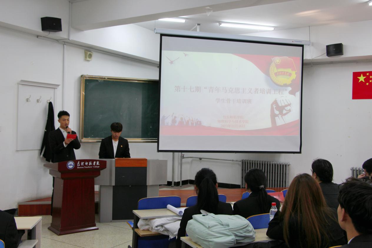 为了提高我院青年大学生政治修养,全面落实“青年马克思主义者培养工程”精神,培养中国特色社会主义事业的建设者和接班人,物理科学与技术学院于11月16日在博学楼506举行物理科学与技术学院“青年马克思主义者培养工程”学生骨干培训班开班仪式。学院党总支副书记徐洋、团总支书记郑霞参加了本次开班仪式。