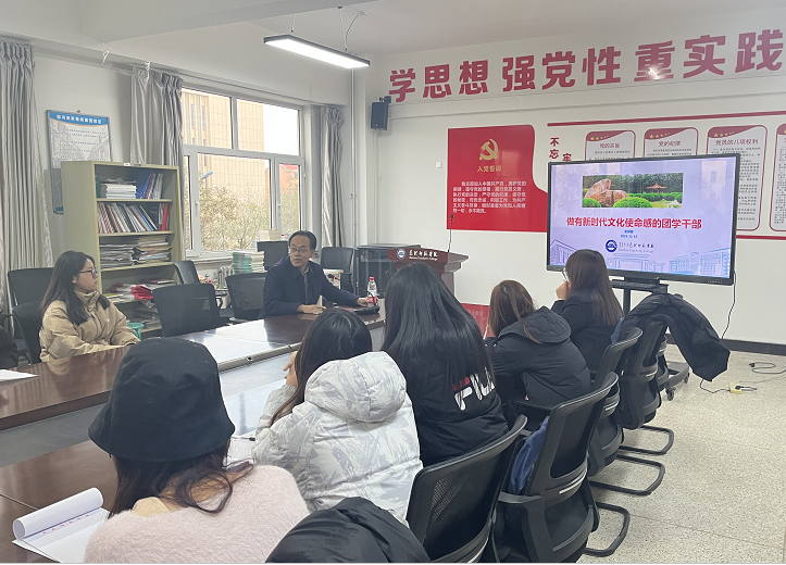 11月13日,邀请美术学院党总支书记史继敏做了题为《做新时代有文化使命感的团学干部》的专题讲座。史老师通过引用习近平总书记的话语“年轻干部精力充沛、思维活跃、接受能力强,正处在长本事、长才干的大好时期,一定要珍惜光阴、不负韶华,如饥似渴学习,一刻不停提高。”开启讲座。他认为作为新时代学生干部,首先应当心系国家事,肩扛国家责,加强自身建设,提升综合素质,同时要树立整体意识和大局意识,培养集体荣誉感和责任感,增强团队凝聚力和向心力。史老师勉励全体学员应当培养国际视野,着眼于人类社会发展前景,牢固树立全球思维和世界眼光,为推动构建人类命运共同体贡献青春力量。