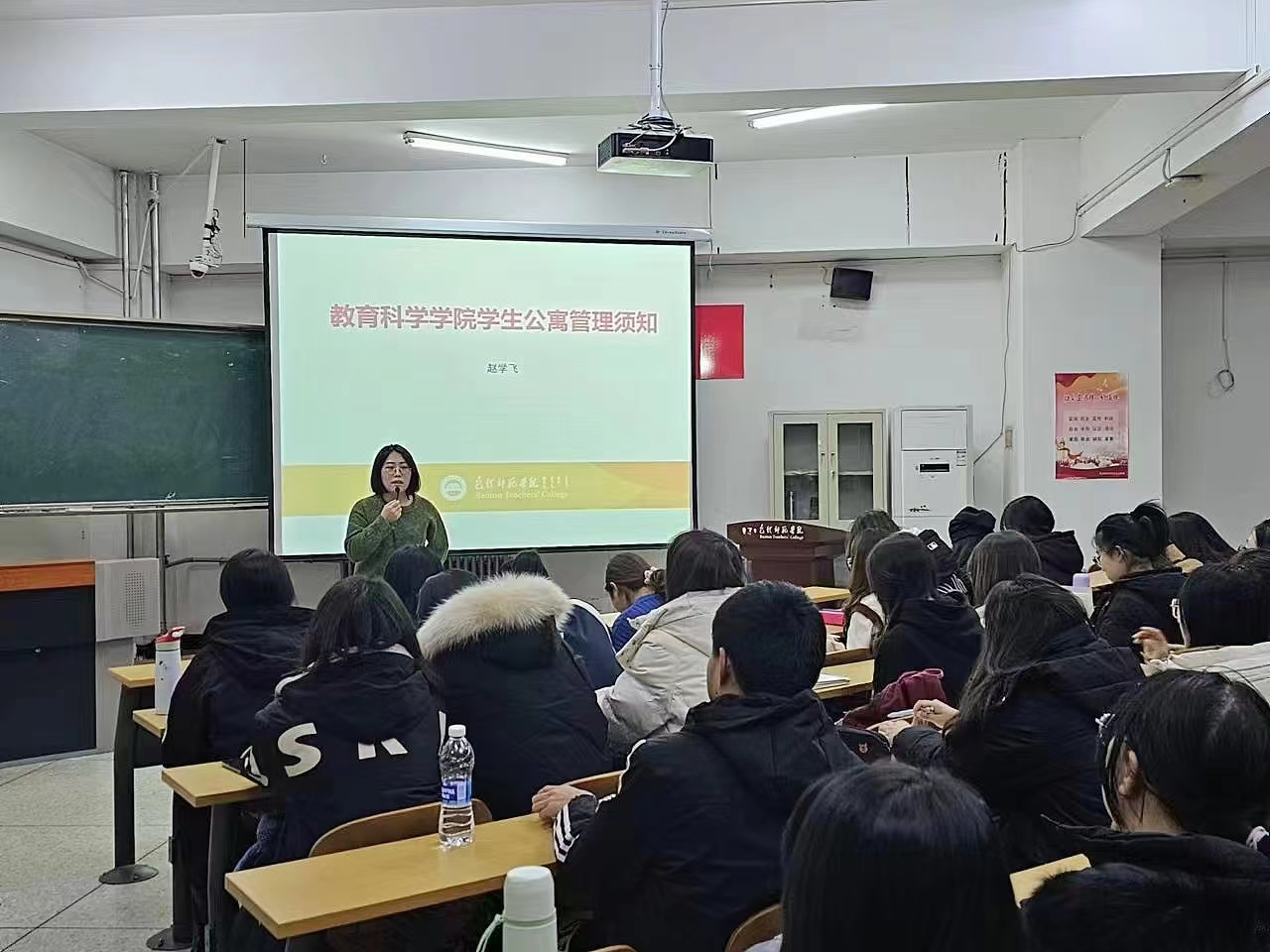 本次培训由教育科学学院辅导员赵学飞老师担任主讲,共涵盖了宿舍规章制度、大学生创新创业以及大学生心理健康等方面的内容。首先,在宿舍管理方面,赵学飞老师深入阐述了学院的规章制度,强调了学生宿舍存在的安全隐患,并呼吁同学们要遵纪守规,关心生活中的各种问题,以模范带头的作用影响同学们在班级中的行为规范。其次,就大学生创新创业发表了深刻的见解,鼓励学生们积极参与创新创业活动,提升创新意识和能力,成为新时代敢于创新的青年力量,为国家的发展贡献个人力量。最后,赵学飞老师亲切关心同学们的心理健康,积极倾听同学们提出的各种心理问题,并提出了关于新时代青年健康向上的要求。并强调新时代的青年不应脱离组织与社会,而应在集体中起到积极作用,培养良好的心理抗压能力,在学业和生活中取得更出色的表现与成就。
