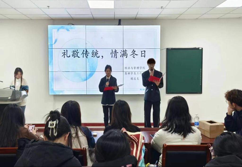 时至冬至,为了进一步弘扬传统民俗文化,丰富校园文化生活,经济与管理学院于12月22日晚在综合教学楼602教室举办“礼敬传统,情暖冬日” 冬至文化主题活动。