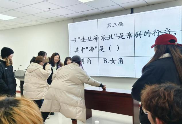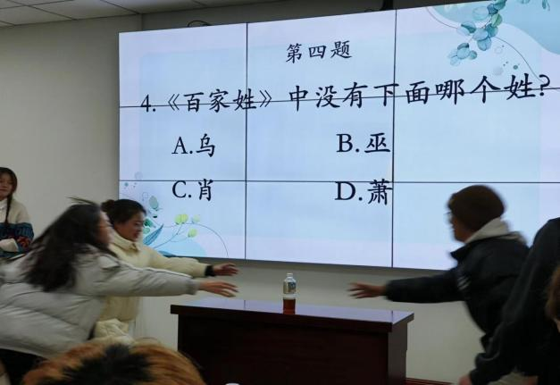 活动分为知识竞赛、飞花令闯关赛活动、你画我猜三个主题。活动现场,“飞花令”环节,同学们争先恐后,诗词储备丰富,现场氛围热烈,欢声笑语不断。在“你画我猜”环节,由主持人画出相符图形,进入决赛的同学们进行猜,队员间配合默契、争相竞猜。